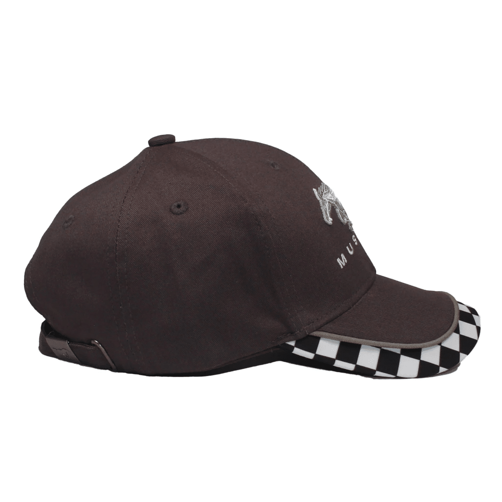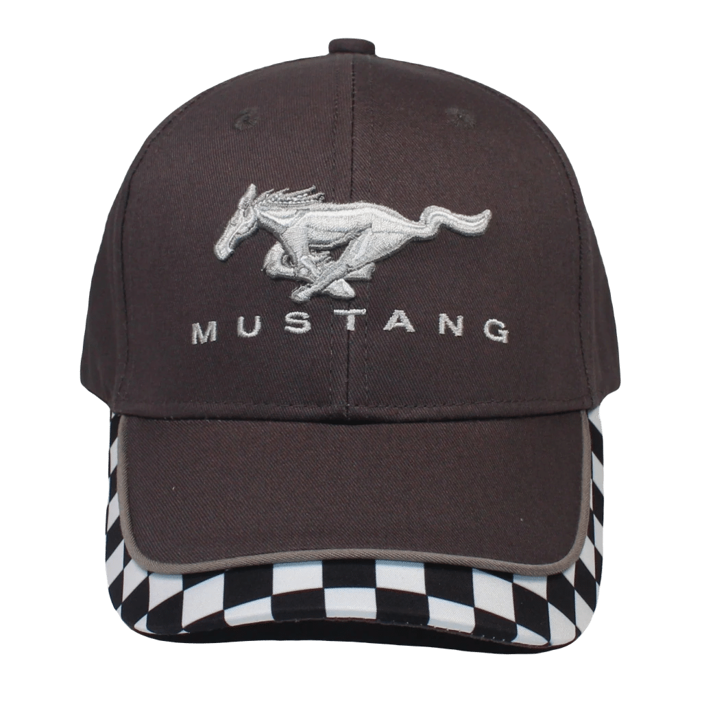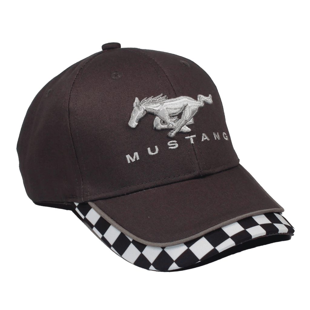 - A must have, is this one cool brown Mustang racing cap to add to your chic-wardrobe collection