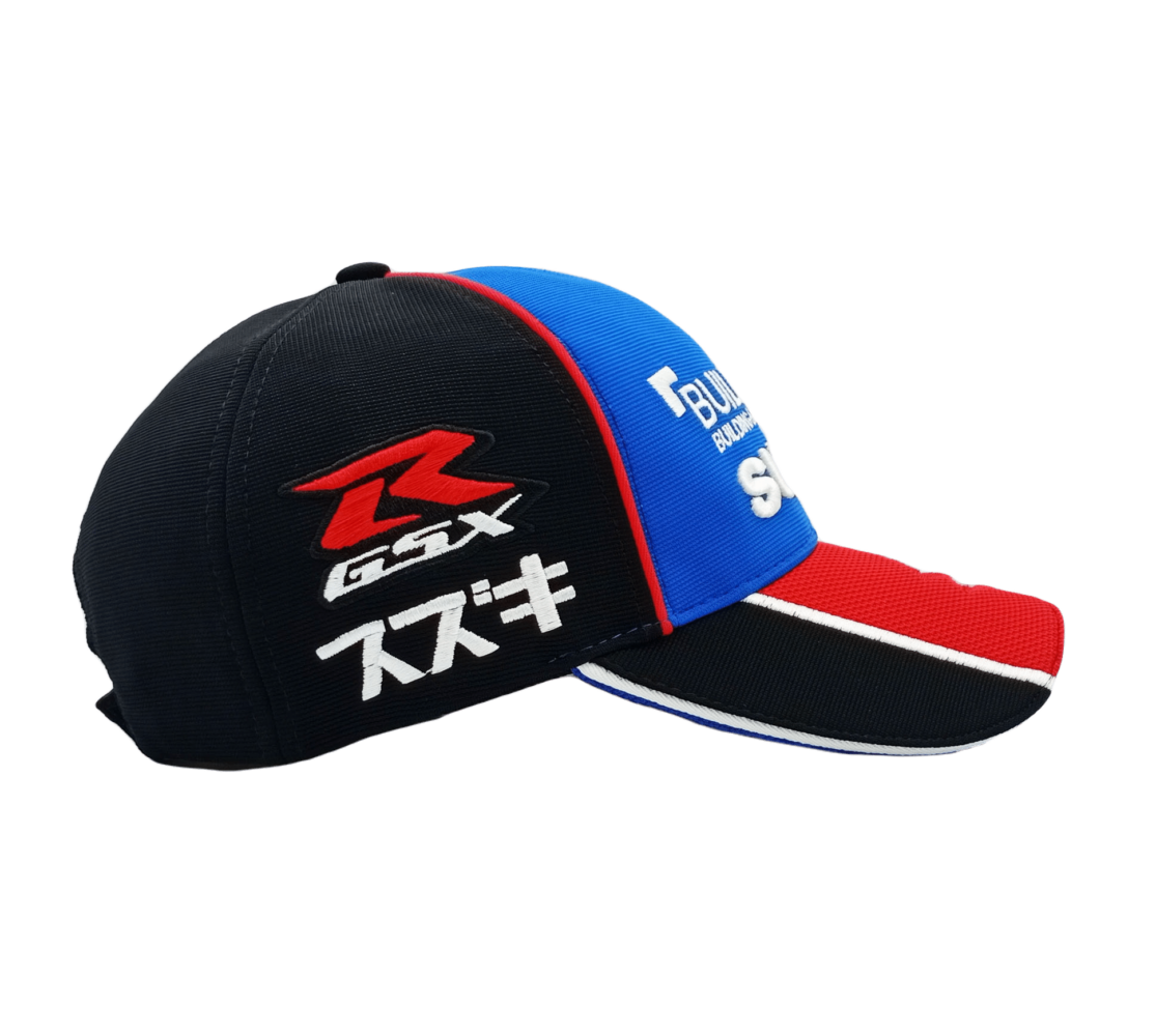- Enhance your casual-chic wardrobe collection with this striking blue Suzuki racing hat